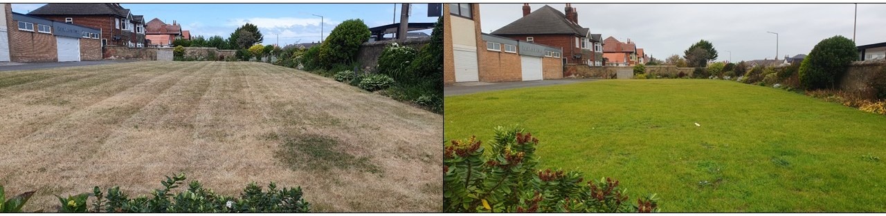 What a difference a bit of rain can make. Above is a local lawn in summer drought, and then after a month of much more usual and showery autumn weather. The dark green patch in the lawn in drought is a patch of yarrow. It still shows as darker green in the rain-watered lawn.