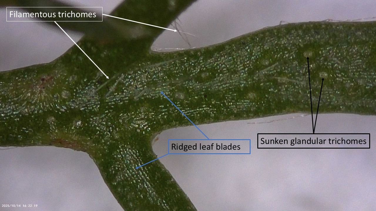 If you look at the image and notice the sunken glandular trichomes, you will see how unlike hairs they can be. They have some useful advantages if you are a plant, they assist in: