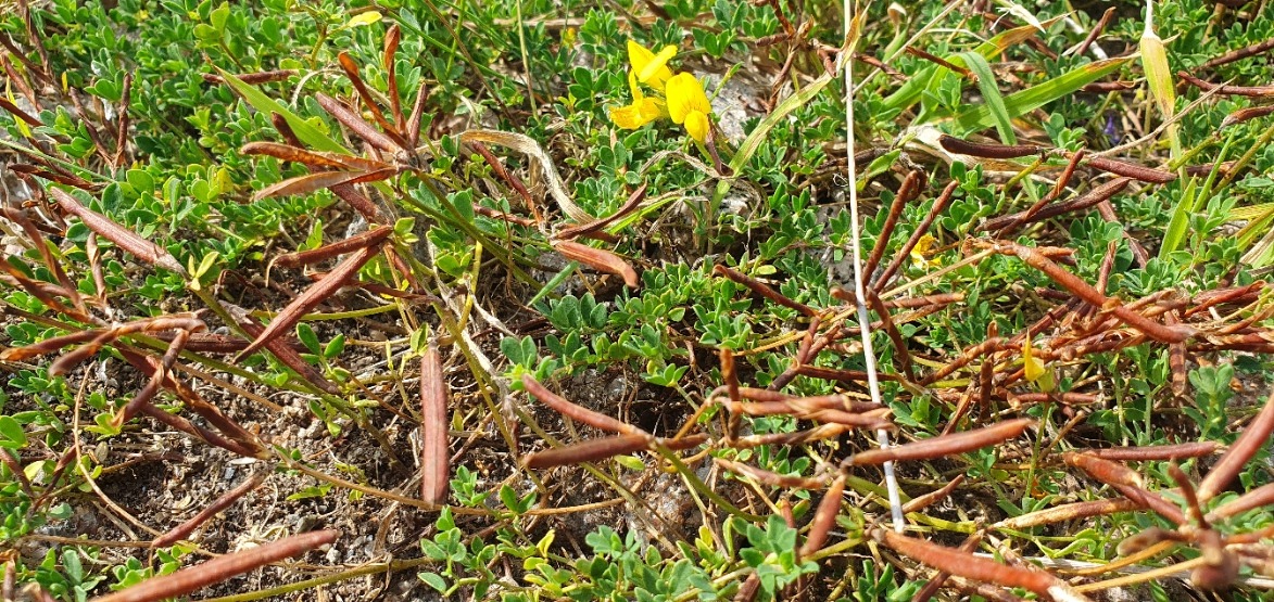 2 September 2025I recently collected some prostrate form (and therefore lawn worthy) Bird’s-foot trefoil (Lotus corniculatus) seed heads from a patch of land currently derelict and unused.
