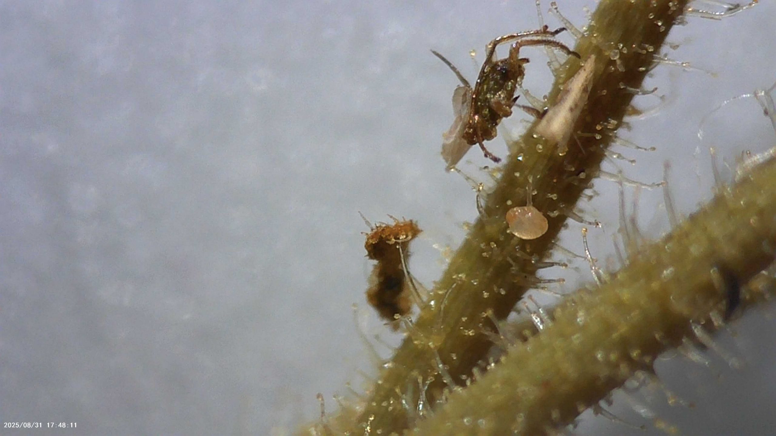 A golden aphid mummy. Not wrapped in an ancient Egyptian's embalmers bandages, but none-the-less scary. This was a surprisingly common sight on the Stork's-bill, with around a dozen per bag of seedheads, (of which I collected three). The aphid has been parasitised by a parasitoid wasp. It has turned a golden colour in response to being eaten from the inside out. There is often a circular exit from the aphid shell. My clumsy fingers crushed the best example - hey ho.