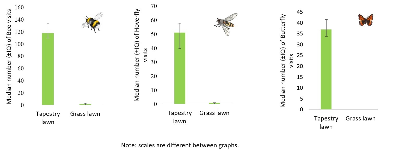 Tapestry lawns were found to be 80 times more attractive to pollinators than just grass, and visited by eight times as many different pollinator species.